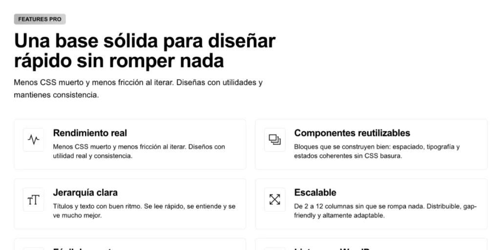 Te ofrecemos como parte de la membresía una colección de componentes y bloques de diseño basada en el framework Tailwind CSS y adaptada para funcionar de forma amigable con Bricks Builder. Tailwind CSS es el Framewok más utilizado actualmente y te ofrece soporte para trabajar con clases de utilidad, de forma que hagas diseños de calidad sin necesidad de ser un experto en CSS.