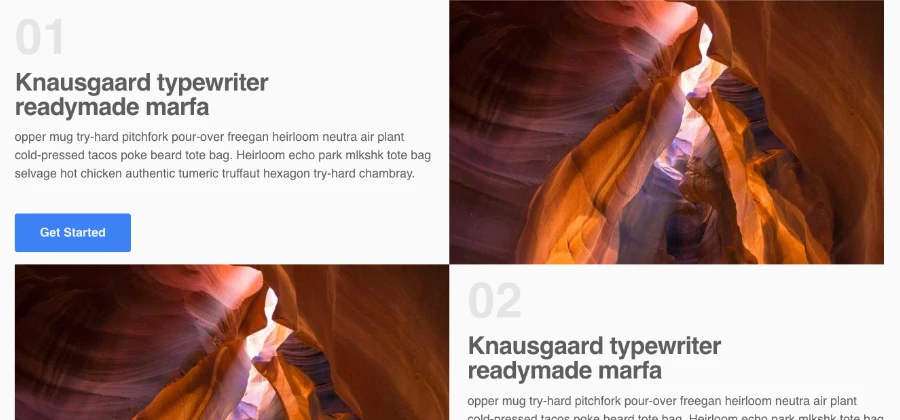 Secciones de hero, portfolios, blogs, footers, formularios, pricing y más.